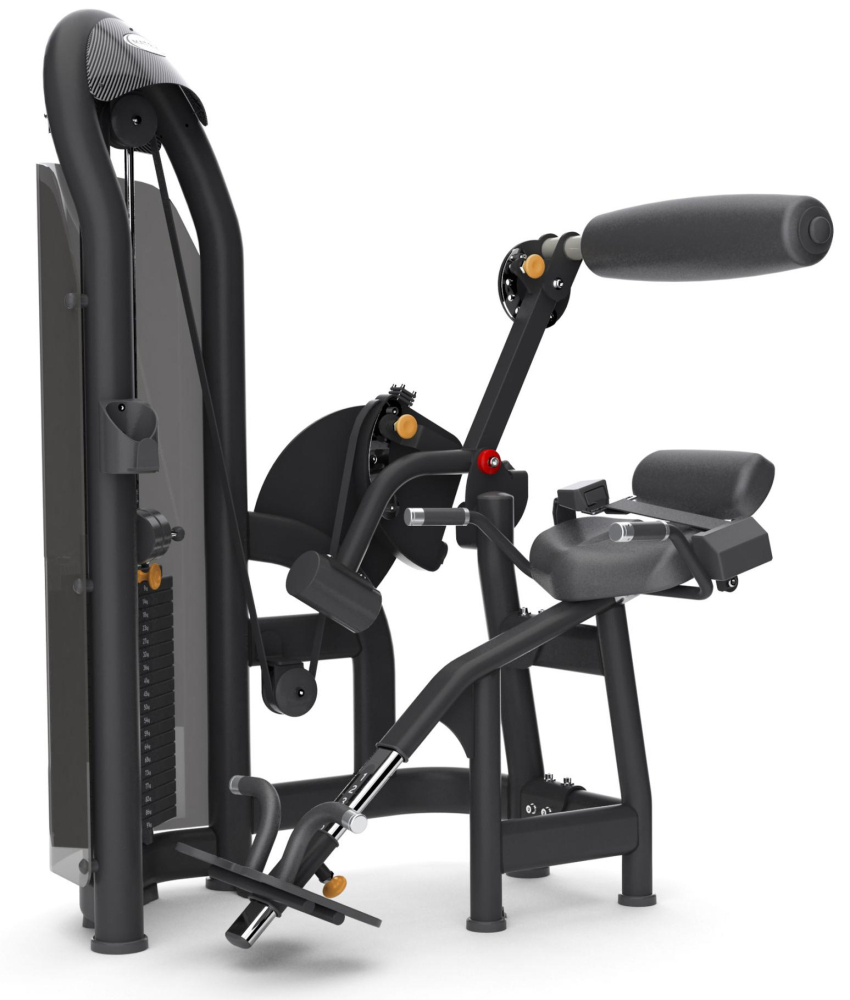 Профессиональный силовой тренажер - блочная гиперэкстензия (разгибание спины). Настраиваемое положение опоры для ног. Нескользящее покрытие опоры для ног. Точка вращения расположена таким образом, чтобы максимально включить в работу мышцы нижней части спины. Биомеханически верная траектория движения. Защита весового стека акриловым щитом.
